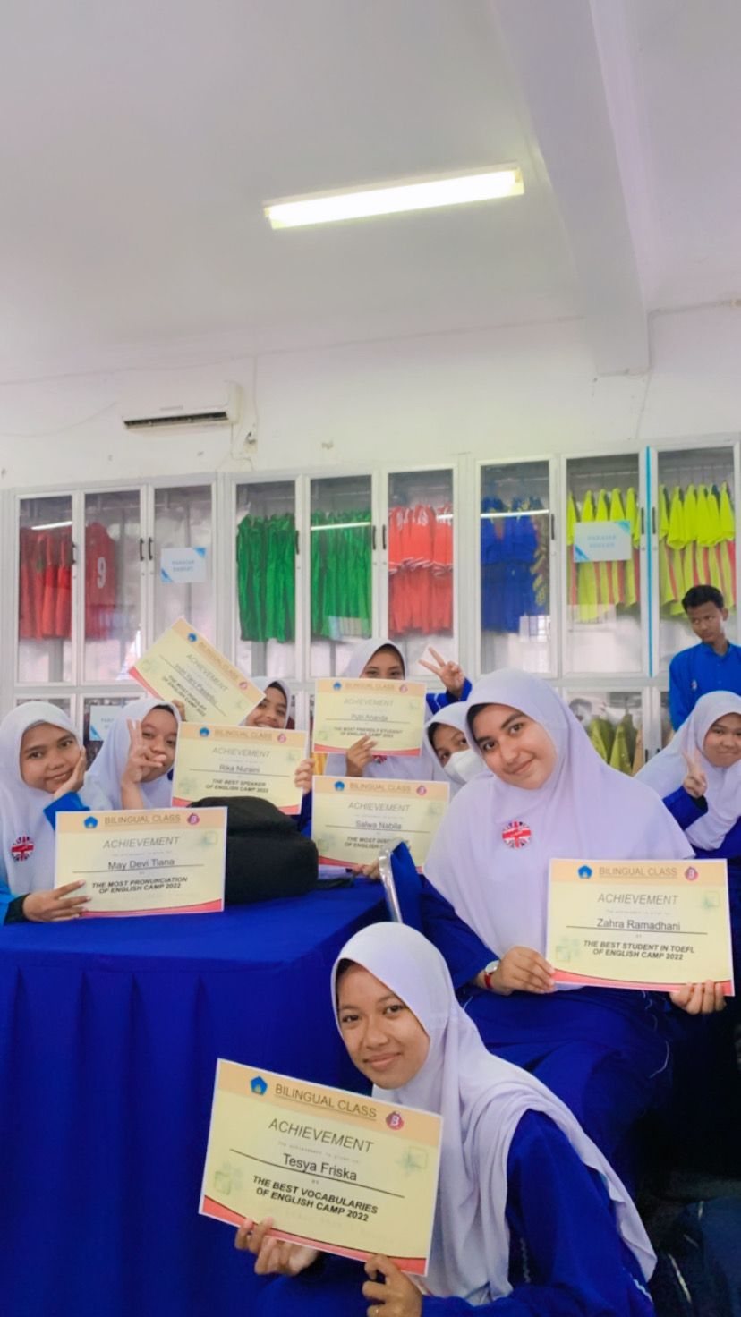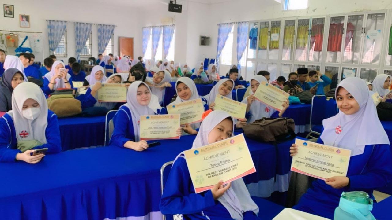 Kelas Unggulan Bilingual SMAN 1 Bangko, kelas X, XI dan XII (. Penyerahan sertifikat English Camp 2. Pembagian Pin English Area untuk kelas XI dan XII 3. Pembagian team study club kelas X dan XII